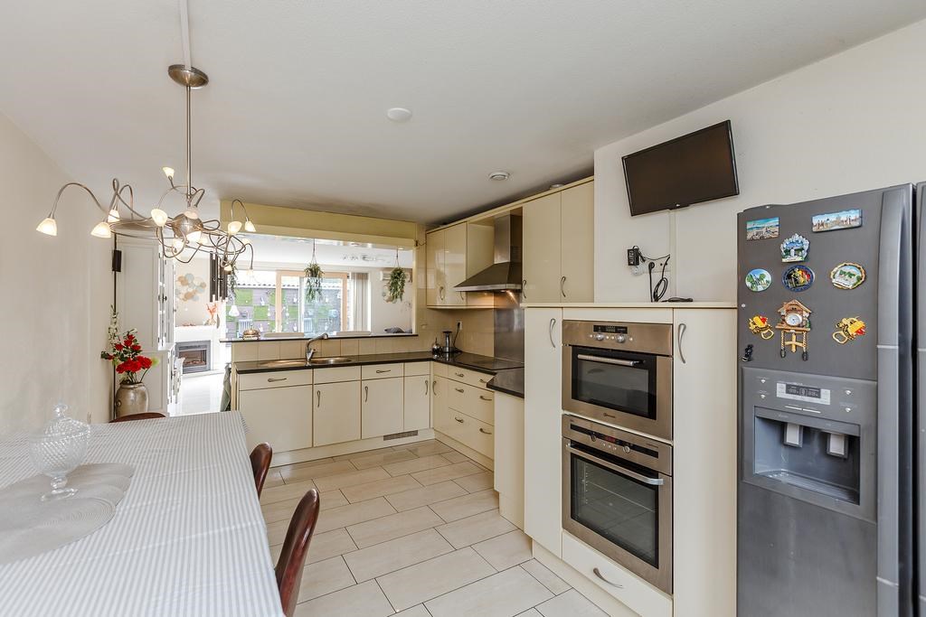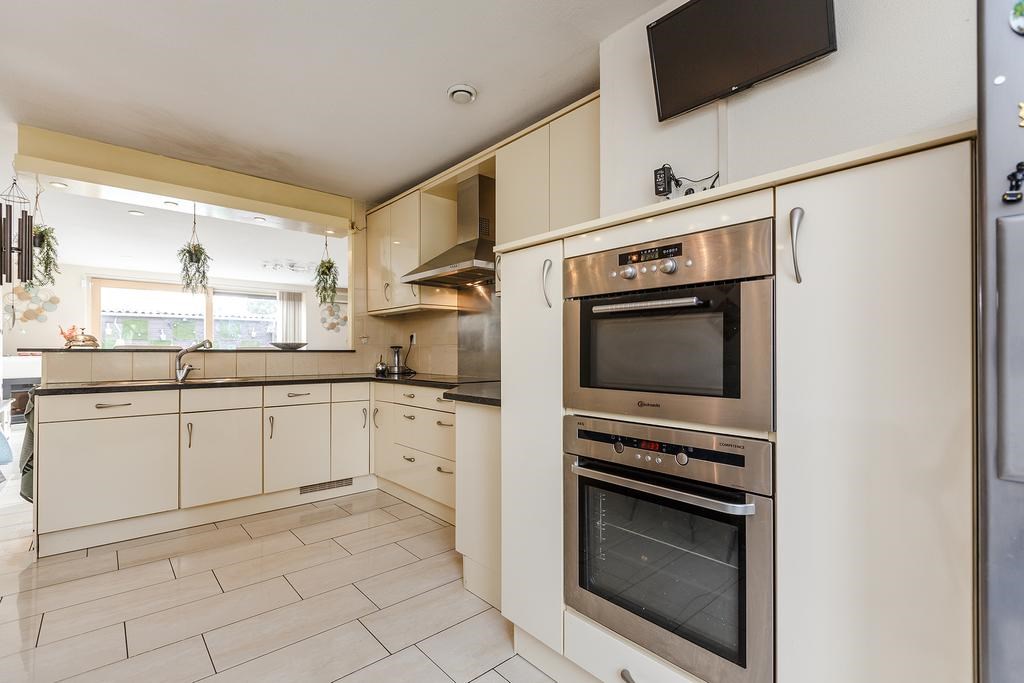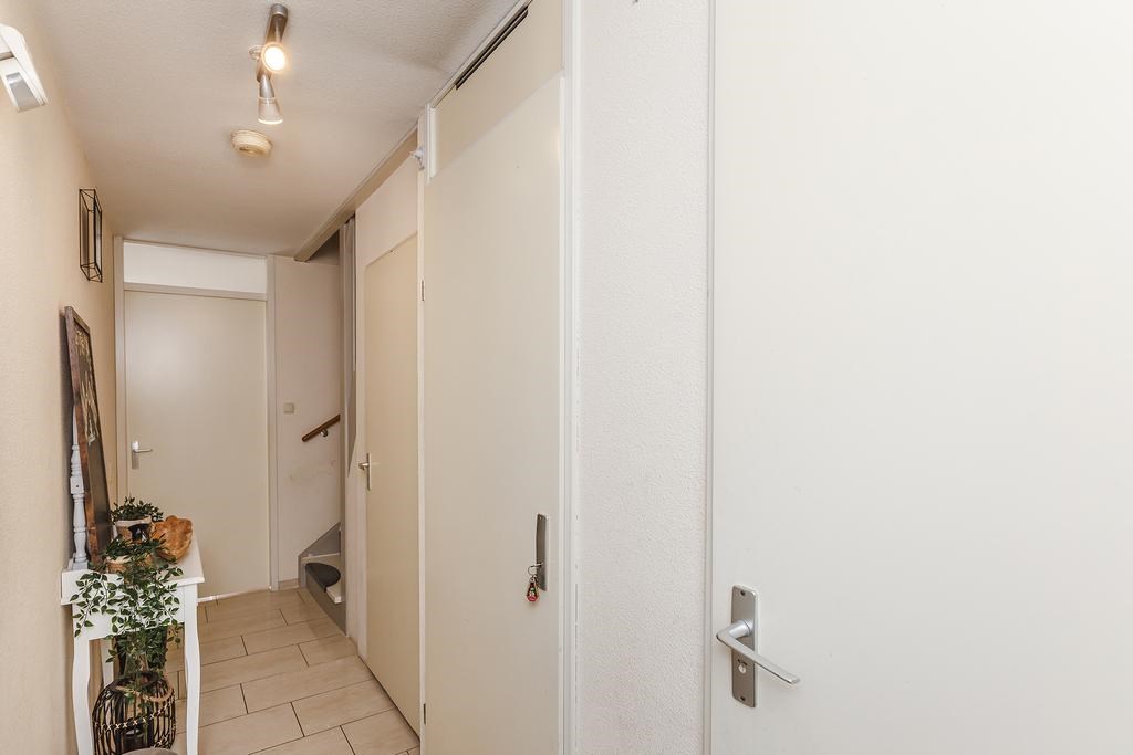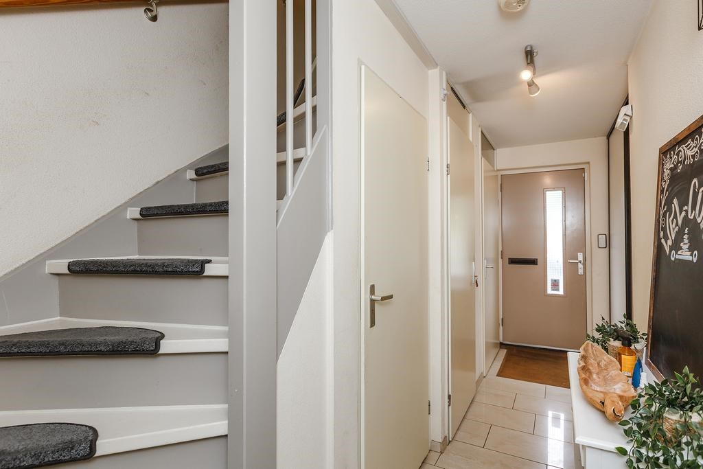Entree met meterkast, trapkast, trapopgang en toegang tot de woonkamer met open keuken. De ruime en lichte woonkamer is voorzien van een lichte tegelvloer met vloerverwarming en een grote schuifpui naar de achtertuin. De moderne keuken is uitgerust met een vaatwasser, Amerikaanse koel-vriescombinatie, inductiekookplaat, combimagnetron, separate oven en veel kastruimte.