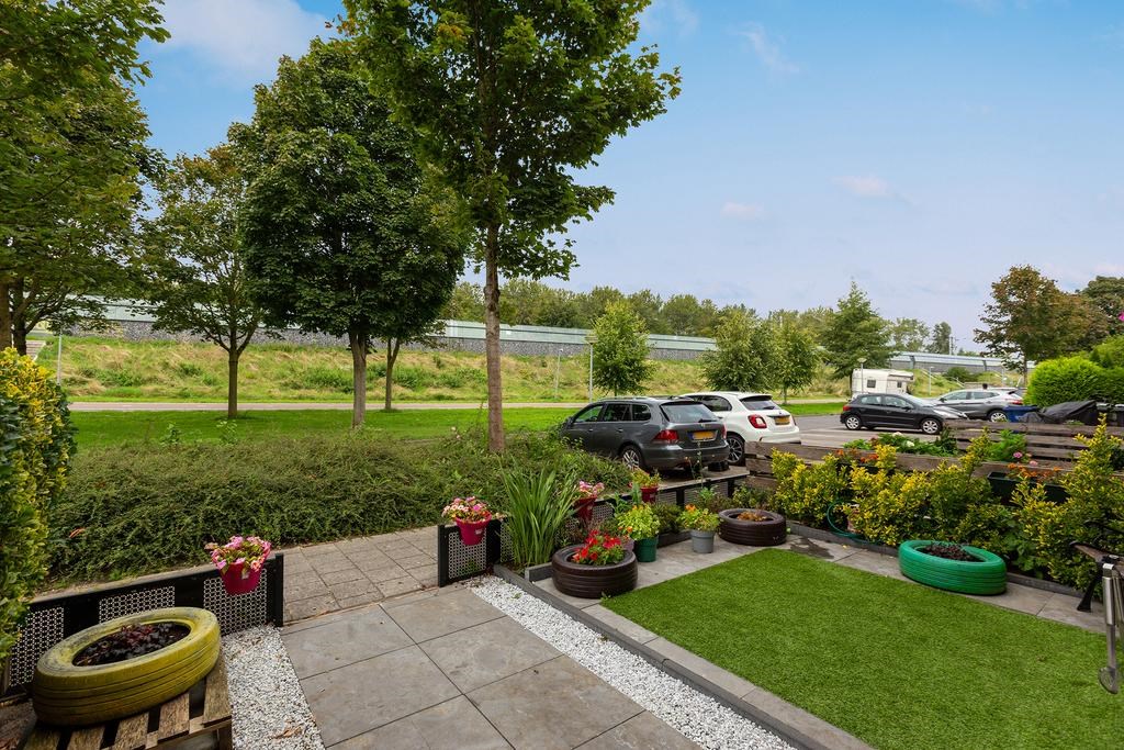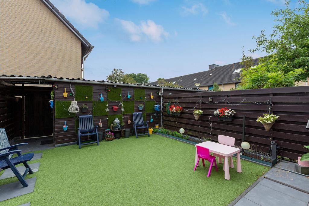 De onderhoudsvriendelijke achtertuin, gelegen op het zuidoosten, is bereikbaar via een achterom en voorzien van kunstgras en bestrating. Achter in de tuin bevindt zich een praktische berging.
