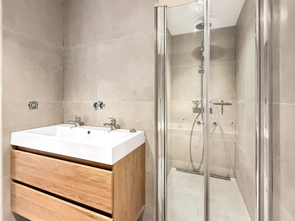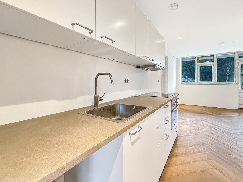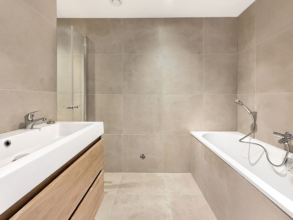 De woning beschikt over een lichte woonkamer met een moderne afwerking en een praktische indeling. De open keuken sluit naadloos aan en is uitgevoerd in een eigentijdse stijl. De slaapkamer is ruim en biedt voldoende plaats voor een tweepersoonsbed en kastruimte. De badkamer is strak en modern afgewerkt.