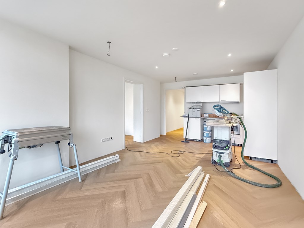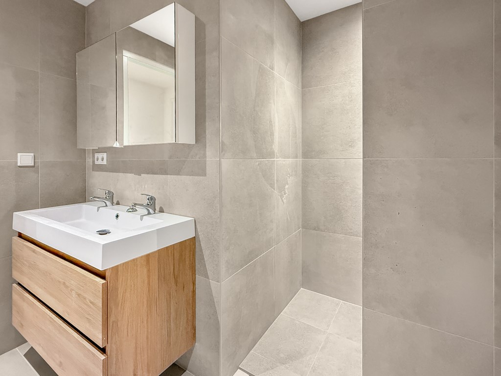 De woning beschikt over een lichte woonkamer met een moderne afwerking en een praktische indeling. De open keuken sluit naadloos aan en is uitgevoerd in een eigentijdse stijl. De twee slaapkamers zijn ruim en bieden voldoende plaats voor een tweepersoonsbed en kastruimte. De badkamer is strak en modern afgewerkt.